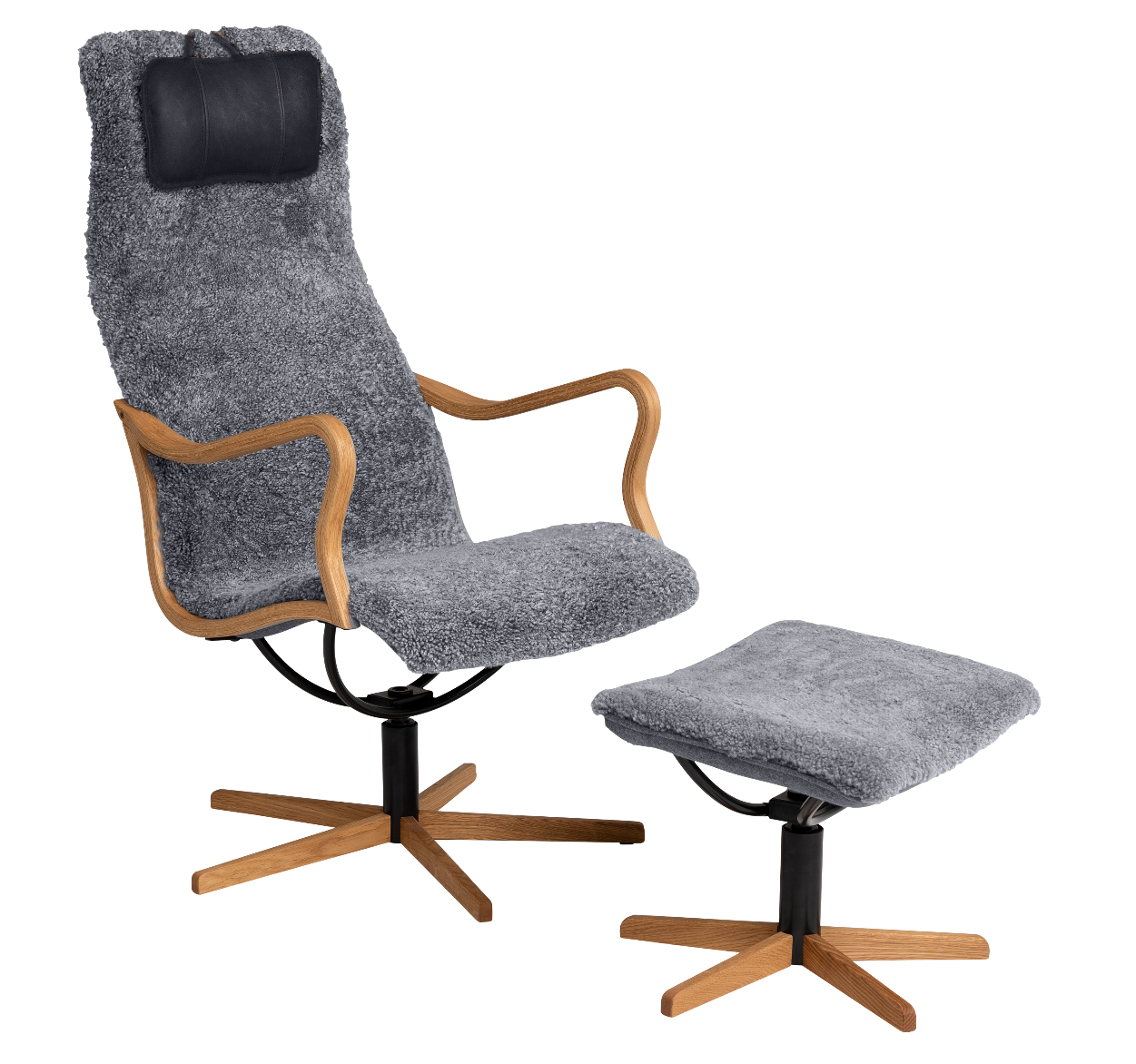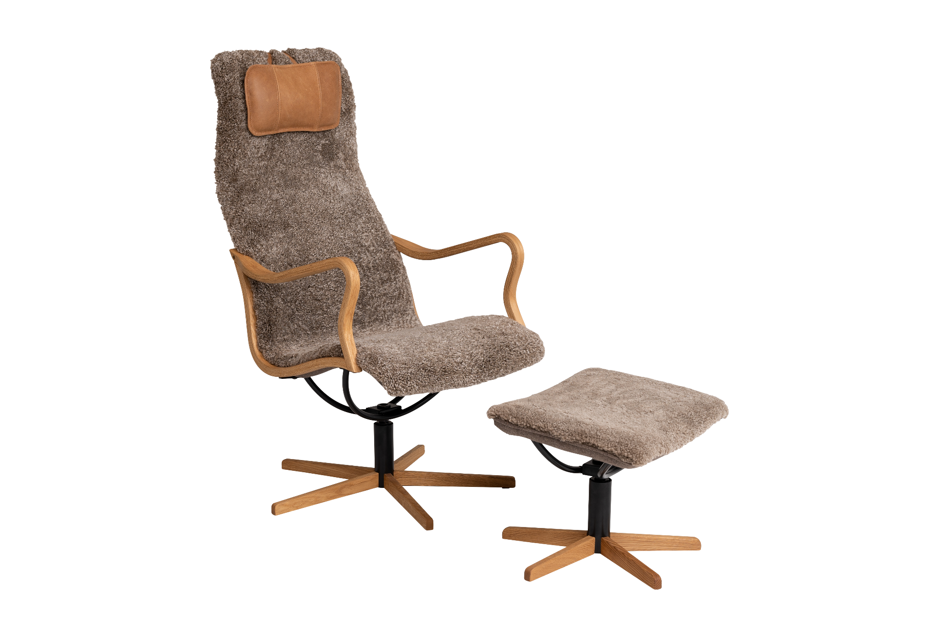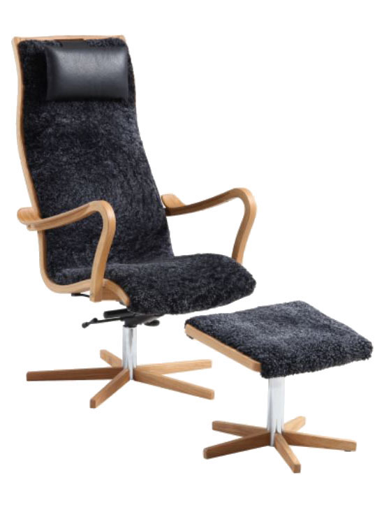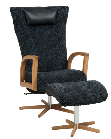 Caliber snurrfåtölj & pall fårskinn koks