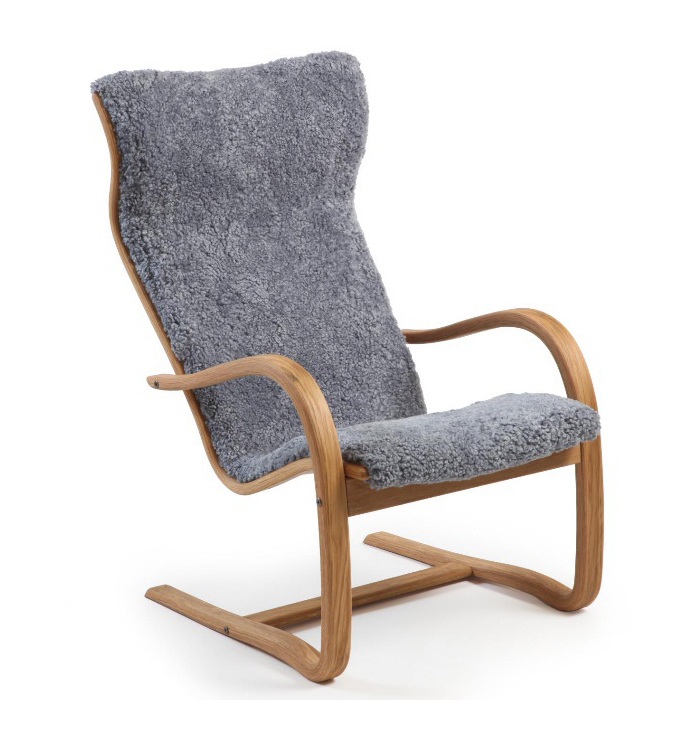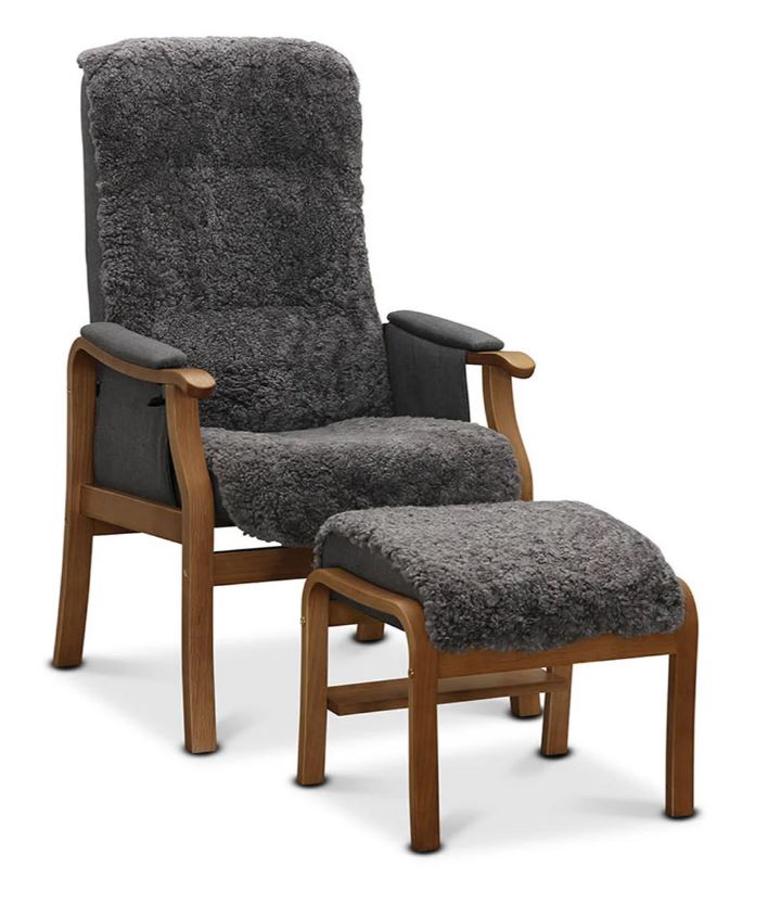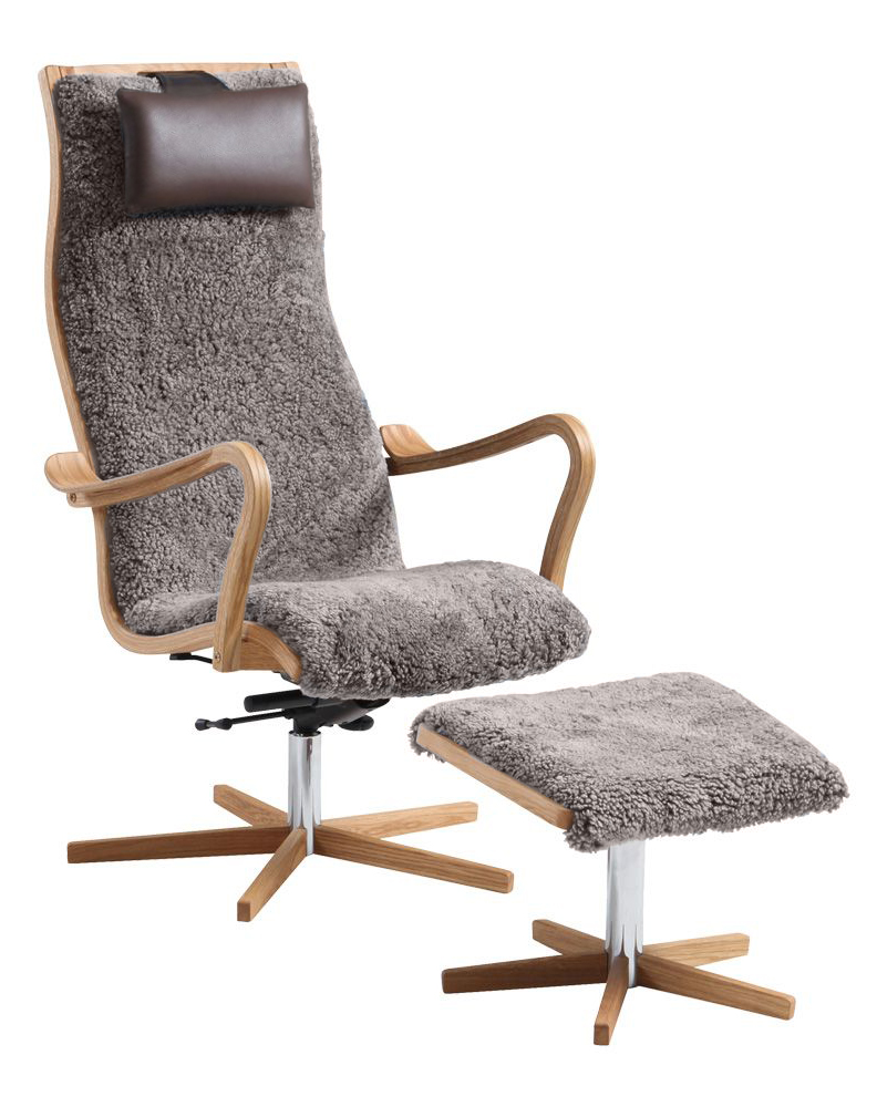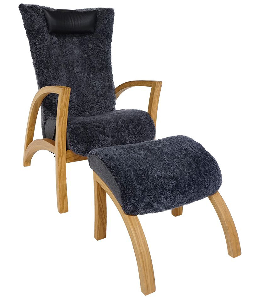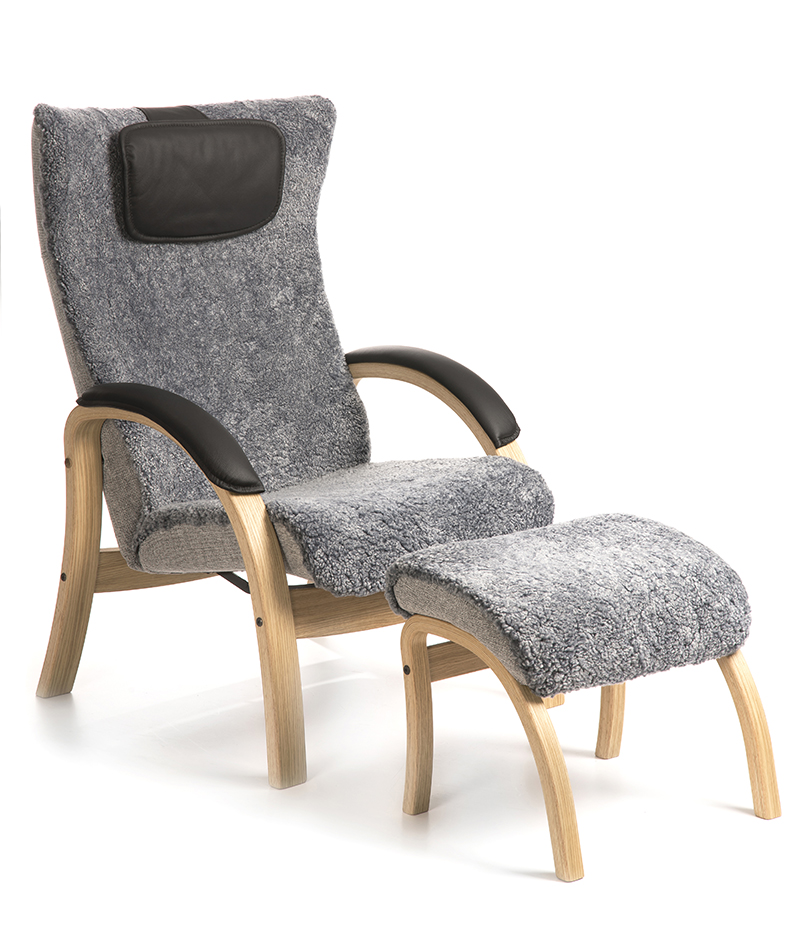 Bergen fåtölj & pall fårskinn grå