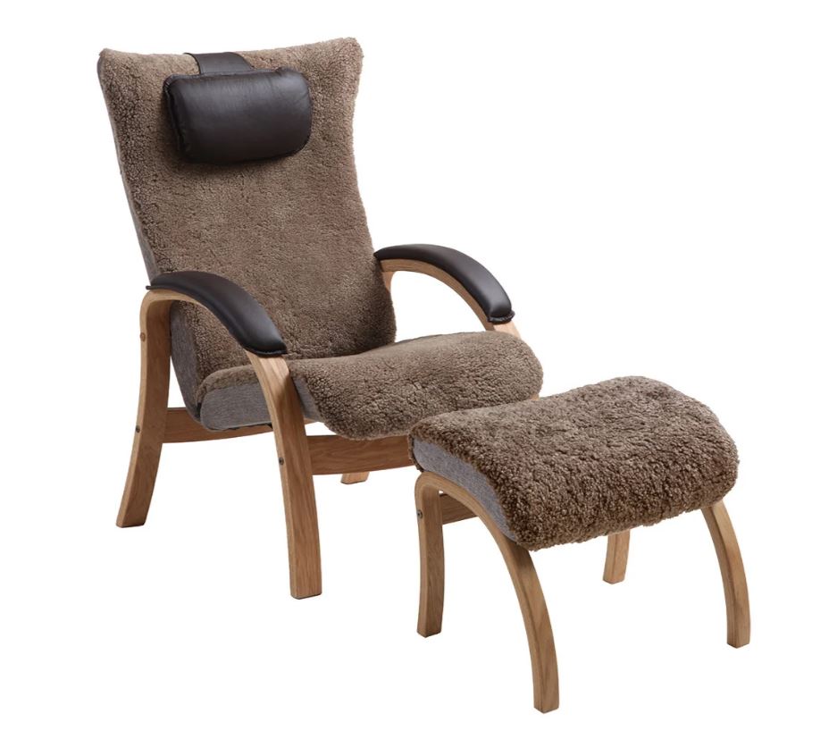 Bergen fåtölj & pall fårskinn sahara